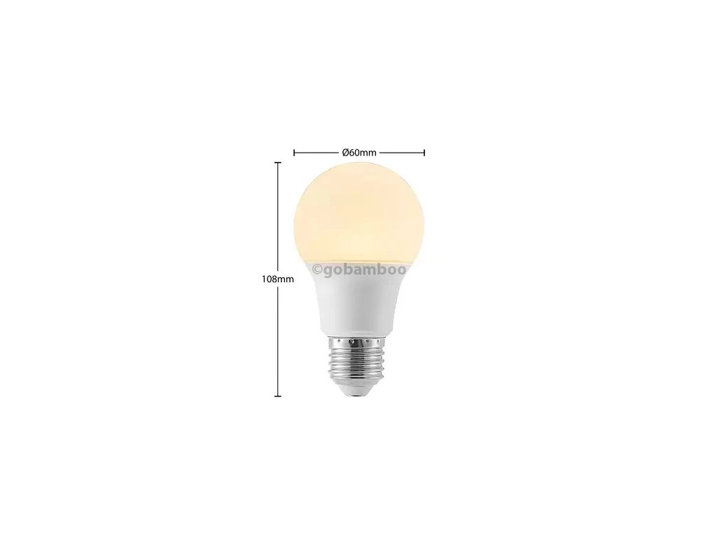 Opálfehér LED-lámpa E27 A60 8W, melegfehér fényszínnel (3000 K) Ez a polikarbonát LED-lámpa nagyon robusztus, és számos lámpatestben hagyományos 60 W-os izzó helyettesítésére használható. Nem tompítható.
