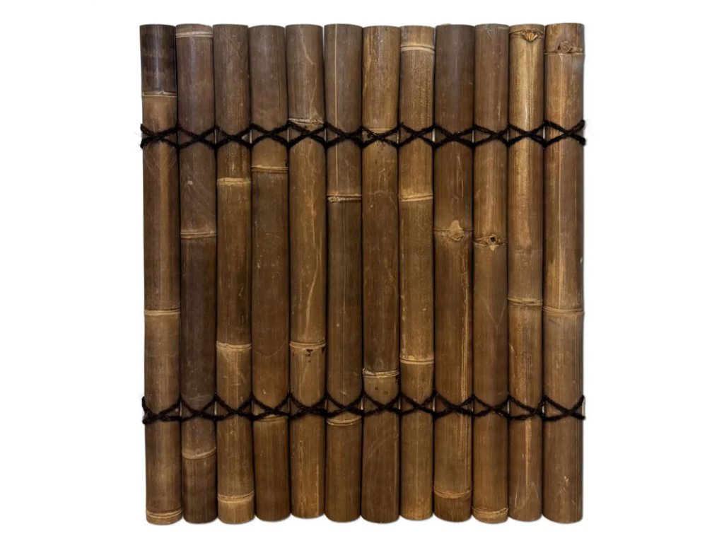Ezek a félkör alakú bambusz kerítéspanelek természetes fekete bambusz rudakból készülnek, melyek átmérője 6-9 cm. A rudakat félkör alakú bambusz darabok és tartós kókuszrost kötél fogja össze, amely a panel teljes szélességében fut végig, biztosítva a stabilitást és a természetes megjelenést.