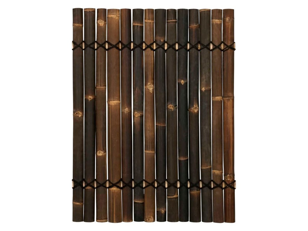 Ezek a félkör alakú bambusz kerítéspanelek természetes fekete bambusz rudakból készülnek, melyek átmérője 6-9 cm. A rudakat félkör alakú bambusz darabok és tartós kókuszrost kötél fogja össze, amely a panel teljes szélességében fut végig, biztosítva a stabilitást és a természetes megjelenést.