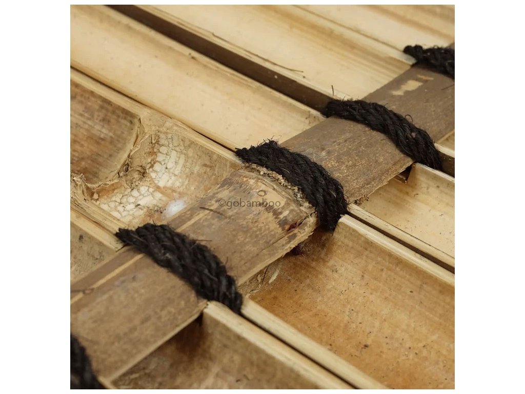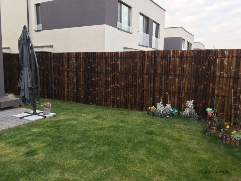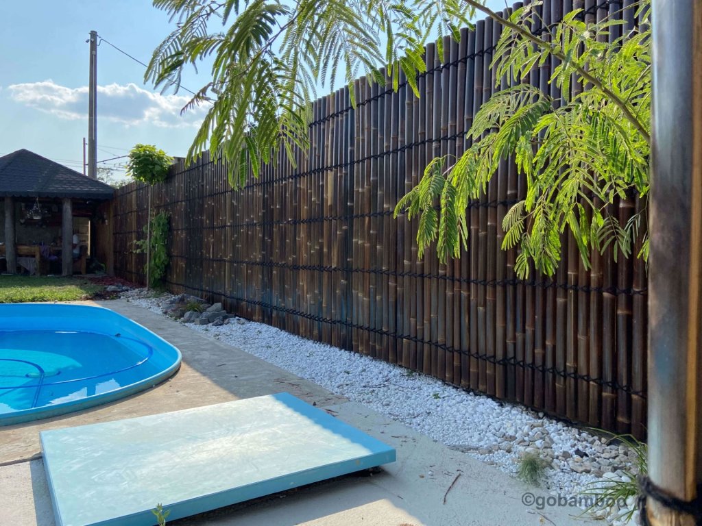 Ezek a félkör alakú bambusz kerítéspanelek természetes fekete bambusz rudakból készülnek, melyek átmérője 6-9 cm. A rudakat félkör alakú bambusz darabok és tartós kókuszrost kötél fogja össze, amely a panel teljes szélességében fut végig, biztosítva a stabilitást és a természetes megjelenést.