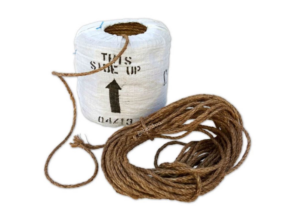 A 6 mm átmérőjű és 200 m hosszúságú manilai kötelünk ideális a nagy átmérőjű bambuszrudak és bambusz kötések rögzítéséhez vagy befejezéséhez. A manilai kötél a banán növény természetes rostjaiból áll, és bézs színű, bambusszal kombinálva jól néz ki. A manilai kötél a csavarok elrejtésére is használható, amelyeket bambusz rudak összekapcsolására használtak. Egyszerűen kösse be a kötelet az ízületek fölé, hogy nagyon erős eredményt érjen el, tökéletes befejezéssel. Ezt a 3 szálú kötelet olajjal kezelik, ami kissé simább szerkezetet kölcsönöz neki. A kötél 1. osztályú, ami azt jelenti, hogy nagy a szakítószilárdsága 245 kg.